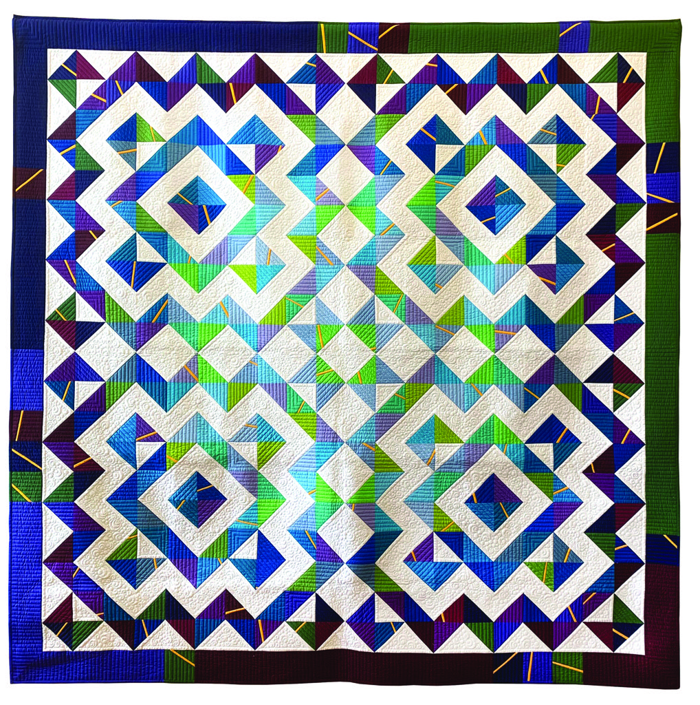 A Madison, Wisconsin-based artist, in 1985, as a relative newcomer to the quilting scene, she made a lasting impression on the judges of the first American Quilters’ Society national quilting competition in Paducah, Kentucky, where her innovative work, The Blade, won the professional patchwork category.