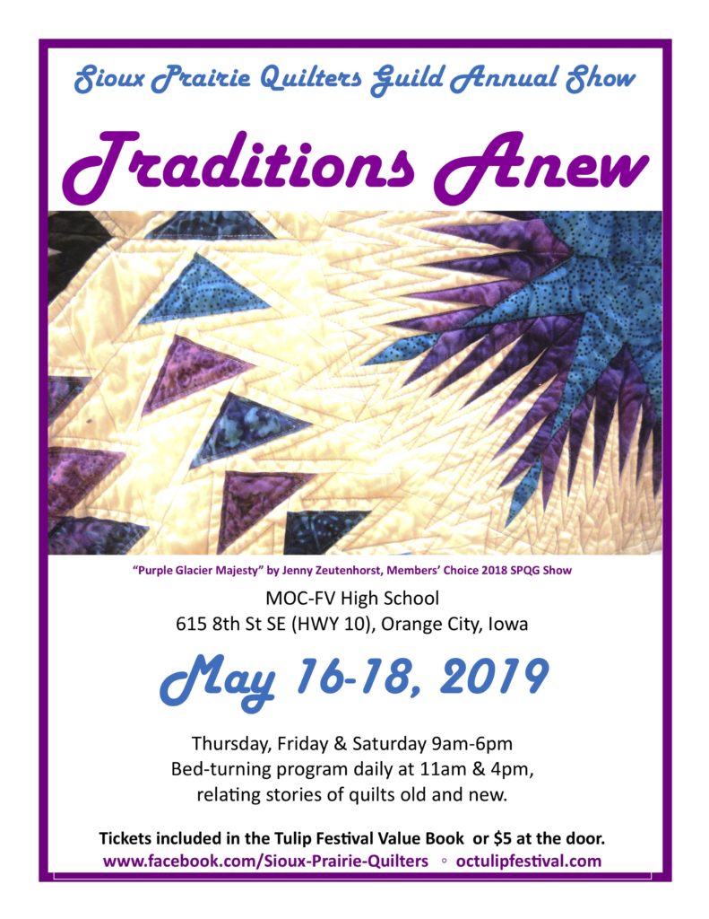 May 16-18, 9:00am – 6:00pm Sioux Prairie Quilters Guild, Orange City